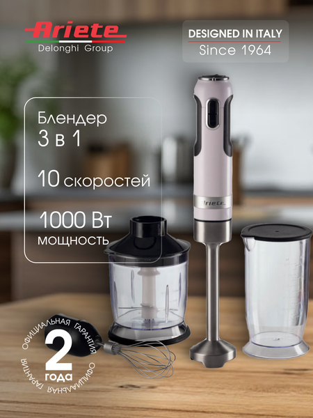 Ручной блендер Moderna — это идеальный блендер для вашей кухни, оснащенный различными аксессуарами для выполнения множества функций: • Стакан объемом 700 мл: для смешивания различных ингредиентов по вашим рецептам; • Измельчитель объемом 500 мл: для измельчения льда и приготовления вкусных смузи и свежих соусов; • Взбейте ингредиенты венчиком до состояния пюре и взбитых сливок; • Съемное лезвие облегчит уборку на кухне и ускорит мойку блендера. Итальянская марка Ariete гарантирует высокое качество продукции по европейским стандартам. Ariete входит в Delonghi Group — исторический бренд и нынешний мировой лидер в области мелкой бытовой техники, с продуктами, связанными с кофе, комфортом, кухней и глажкой. Это уникальное сочетание качества, инноваций и дизайна. С современным ручным блендером вы легко, удобно и быстро приготовите все, что вам нужно. Предоставляется гарантия 2 года в фирменных сервисных центрах.