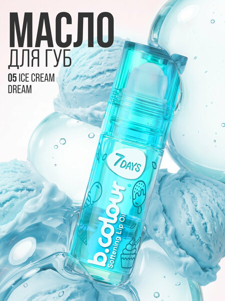 Блеск для губ прозрачный 7DAYS B.COLOUR 05 ICE CREAM DREAM - увлажняющее масло для губ с шариком с приятным сладким ароматом Мороженого! Масло блеск для губ с оттенком бережно ухаживает, увлажняющий блеск для губ детский для девочки питает. Блеск для губ прозрачный увлажняющий с легкой и не слишком жидкой масляной текстурой. Масло бальзам для губ увлажняющий обеспечит уход и защиту, шариковое масло для губ с оттенком подходит взрослым и детям с 3 лет, в основе уходового средства безопасная формула, тающий бальзам для губ не оставляет липкости, равномерно наносится благодаря шариковому аппликатору. Увлажняющий блеск для губ для девочек с ухаживающим составом увлажняет и образует защитный барьер на коже и препятствует потере влаги, словно гигиеническая помада для губ. Детский блеск для губ с ультра питательной формулой содержит: Масло авокадо питает и увлажняет. Масло жожоба разглаживает и устраняет шелушения. Масло виноградной косточки восстанавливает и смягчает. Способы применения: 1. Как блеск бальзам для губ - обеспечивает уход за губами, защищая их от сухости и обезвоживания. 2. Питает и увлажняет благодаря содержанию натуральных масел, как помада блеск для губ. 3. блеск увеличивающий губы обеспечивает блестящий и гладкий эффект визуально увеличивая губы. Комфортная текстура обволакивает губы, придает им легкий объем и влажный эффект, как прозрачный блеск для увеличения губ, глянцевый 3D финиш не растекается в течение всего дня, блеск увеличивающий для губ с удобным роллер-аппликатором обеспечивает легкость нанесения. Косметика 7DAYS подарки для женщин. 7DAYS подарки, подарок для жены, подарок для мамы, подарки на день рождения, подарок женщине, подарок на др, подарок любимой девушке, подарок для подруги, подарок маме на день рождения. Косметика 7days подарки! Дари красиво вместе с 7DAYS!