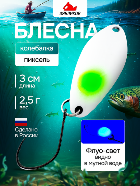 Блесна "Пиксель" от Зябликов - это колеблющаяся блесна, специально разработанная для ловли форели. Изготовлена из латуни, что обеспечивает долговечность и устойчивость к коррозии. Блесна "Пиксель" легкая и компактная, что делает ее удобной для использования в любых условиях. Она быстро тонет, что позволяет использовать ее на разных глубинах. Каждая блесна проходит тщательную проверку на качество и надежность, что гарантирует отличный результат рыбалки. В комплекте идет одна блесна "Пиксель". Вес блесны составляет 2,5 грамма, а длина - 30 мм. Блесна "Пиксель" подходит для ловли на хищника, в том числе на форель и щуку. Блесна "Пиксель" - это отличный выбор для любителей рыбалки на форель. Она обеспечивает высокую эффективность и удобство использования, а также гарантирует отличный результат.