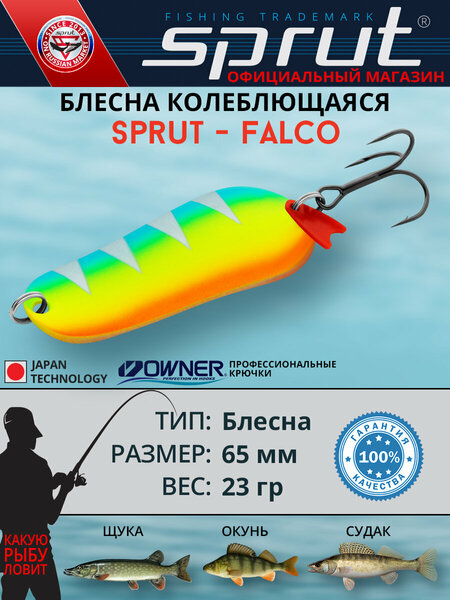FALCO - широкая классическая блесна. Обладает красивейшей средне-размашистой игрой: она может провернуться несколько раз подряд на высокой скорости или против быстрого течения, но в целом на средней и медленной скорости она будет равномерно переваливаться с боку на бок и, так же красиво переваливаясь, опускаться, планируя ко дну на паузах. Эта блесна подходит для охоты за трофейной щукой и крупным окунем в тихой воде озер и карьеров и в речных заводях. В тоже время блесна отлично привлекает рыбу и на реках со средним и средне-быстрым течением.