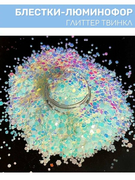 Достоинства:светятся Недостатки:иногда, именно иногда, ибо использую я твинкл много, бывают партии когда они как бы склеенны между собой, не сильно, но если надо выложить узор-проблематично, Комментарий:использовала больше 20 баночек, на ногти, в выкладывание узоров, для заливки новогодних игрушек в эпоксидке, класс!, ещё бы другие цвета именно с эффектом люминофора, светятся ярко.