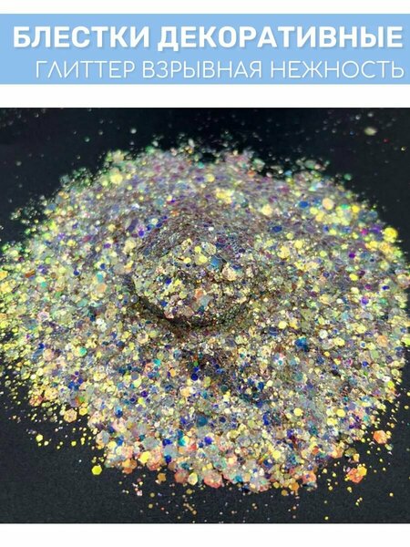 Блестки (глиттер) "Взрывная нежность" (FL82) - это блестящие частички разного размера, которые переливаются при попадании света. Блестки непрозрачные, отлично подходит в качестве очень эффектной добавки в работы эпоксидной смолой. Данные блестки представлены в форме шестиугольников разных размеров. Декоративные блестки и глиттеры стали универсальным аксессуаром в различных областях: декорирование, арт макияж, маникюр, очень красиво они сочетаются с прочими аксессуарами для работы с эпоксидной смолой. Любые изделия изготовленные с декоративными блестками или глиттерами не оставят равнодушными ни Вас, ни Ваших друзей, близких и коллег.