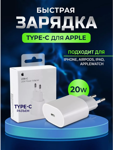 Блок питания для iPhone 20W USB-C - Адаптер Apple, Apple galofka для iPhone, iPad, AirPods