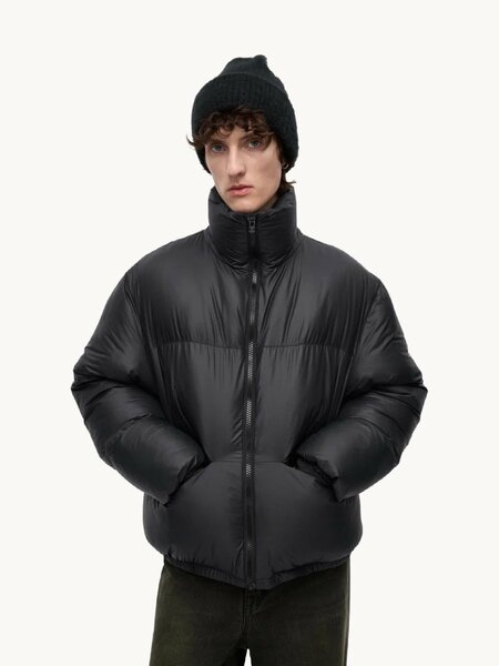 Куртка выполнена из мягкого нейлона с добавлением утеплителя DuPont™ Sorona® (450 г). Модель дополнена воротником-стойкой, что обеспечивает дополнительный комфорт и защиту от холода. У куртки есть два внешних кармана и один внутренний, все они закрываются на молнию. Резинка по нижнему краю и на манжетах защищает от ветра. Верх куртки изготовлен из матового тонкого нейлона. Силуэт оверсайз придаёт объёмность и свободу движений. Подкладка наружных карманов выполнена из флиса. Молнии SAB оснащены пуллерами. Состав: верхняя часть — 100% нейлон, подклад — 100% полиэстер.