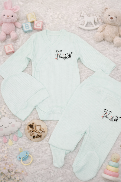 Элегантный комплект для младенцев Мягкий и удобный комплект, созданный специально для новорожденных. Натуральная ткань идеально подходит для детской кожи Внутри комплекта: Body (застегивается сбоку) ползунки Шапка Красивый дизайн панды Отличный выбор подарка