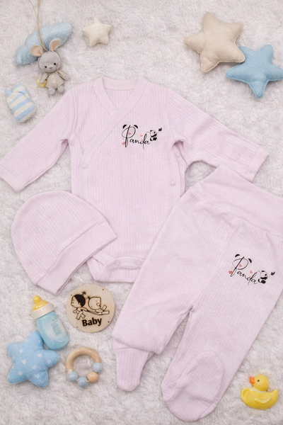 Элегантный комплект для младенцев Мягкий и удобный комплект, созданный специально для новорожденных. Натуральная ткань идеально подходит для детской кожи Внутри комплекта: Body (застегивается сбоку) ползунки Шапка Красивый дизайн панды Отличный выбор подарка