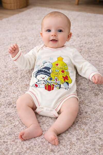 Нежное и удобное боди для малыша 0- 3 месяцев — идеальный вариант для повседневной носки и праздничного настроения. Модель выполнена в нежном принтом. Такой дизайн создаёт уютный и праздничный образ. Основные характеристики: • Тип изделия: боди детское • Возраст: 3 месяца • Рост: примерно 56–62 см • Пол: унисекс • Рукав: длинный • Горловина: круглая, с кнопками на плече для удобного надевания • Застёжка: кнопки между ножек • Материал: хлопковый трикотаж • Ткань: мягкая, дышащая, приятная к коже • Принт: зимний рисунок с ёлкой и подарками • Сезон: осень / зима / демисезон • Производство: Китай Преимущества: ✔ Натуральный материал, безопасный для чувствительной кожи ✔ Удобные кнопки для быстрого переодевания ✔ Комфортная посадка, не сковывает движения ✔ Качественный яркий принт ✔ Идеально подходит для фотосессий и праздников Уход за изделием: • Стирка при 30–40°C • Деликатный режим • Не отбеливать • Гладить при средней температуре Боди отлично сочетается с ползунками, штанишками и тёплыми костюмами. Подойдёт как для повседневного использования, так и для праздничных мероприятий.