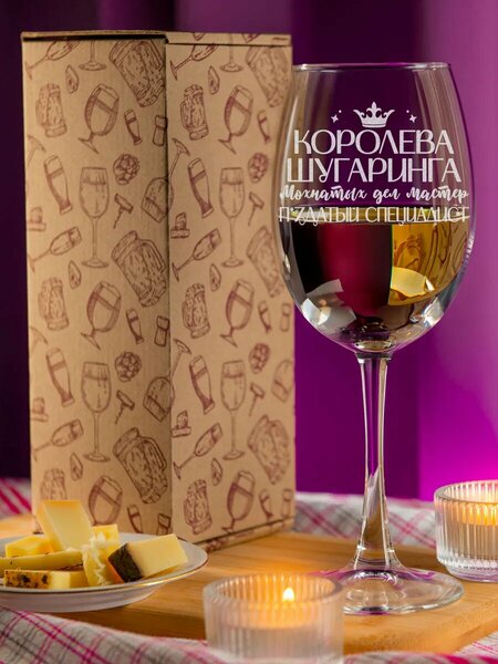 Уникальный большой декоративный бокал с надписью для вина. Подарок мастеру шугаринга. Надпись с лазерной гравировкой не стирается. Его можно мыть в посудомоечной машине. Прекрасно впишется в интерьер дома и кухни. Фужеры для вина надежно упакованы в воздушно-пузырчатую пленку и картонную коробку. Идеальный подарочный сувенир для особых моментов! Отличное решение презента для вашей любимой подруге или девочки, другу; парню, мальчику, брату; девушке или близкому человеку. Неповторимый подарок на юбилей мамы, свадьбу, крестины крестной или мужчинам и женщинам без повода. Оригинальный дизайн и новогодняя праздничная изящная форма наших бокалов придадут особое очарование вашему столу и создадут атмосферу на 23 февраля; юбилей рождение, девичник; день святого Валентина; девушке или девочке. Будь то свадьба, на юбилей коллегам или просто желание порадовать мужа, близкого человека на годовщину, например маме, лучшему папе или бабушке и дедушке из ссср. Новогодние презенты и аксессуары, сувениры помогут выразить ваши чувства и создать незабываемую новогоднюю атмосферу праздника учителю или тренеру, воспитателю, лучшей подруги, руководителю или любого гостя на мероприятии. Подарите радость близким людям украшения на новый год, 8 марта, на выпускной или 14 февраля. Наши прикольные фужеры под вино, мартини и шампанское, кружки для пива и напитков, стаканы под лимонад; рюмки для особого вкуса настоек, стопки для коньяка, стаканчики, кубки для тоника. Это идеальный новогодний мужской, а так же женский прикольный мини подарок матери и отцу. Для пары влюбленных с юмором, супругов, родителей или друзей на праздник рождество, именины любимому мужу, жене; сестре, сестренке; сыну или дочки, любовнику или любовнице. Подарите им что-то уникальное на 18, 45 лет. Креативная надпись -мама не бухает- будет приколом на день рождения. Не упустите возможность сделать свадебные подарки с приколами. Удивить учителя фразой - Бакалы - или – Падарок.