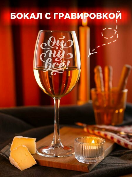 Винный бокал с лазерной гравировкой 450 мл 1 шт