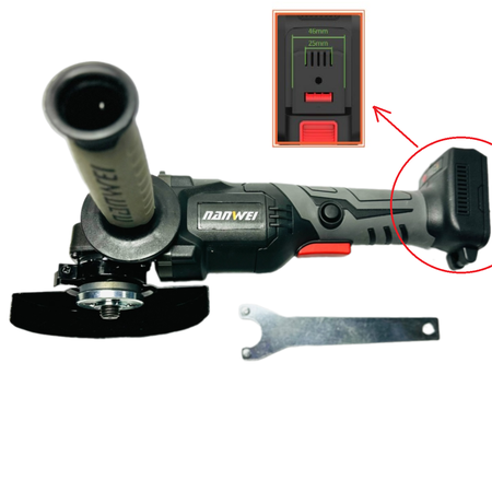 Болгарка без батарей с защитным кожухом, рукояткой, ключом в комплекте. 125 мм. Для работ в труднооступных местах без электричества. Батареи совместимые А+ 398, 528, 798, 998.