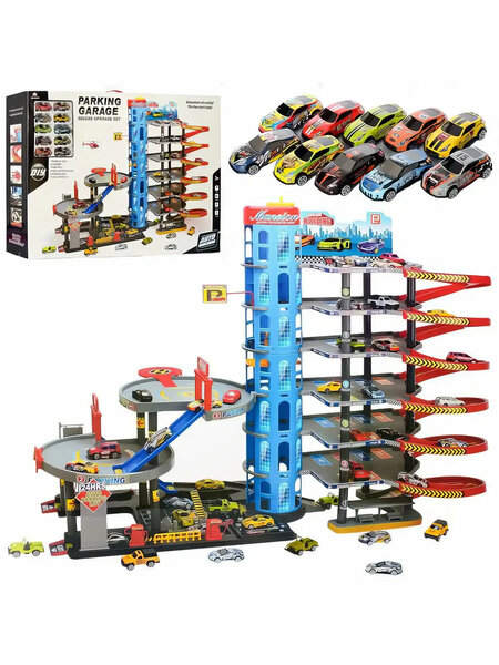 мегагараж с лифтом и машинами на 8 уровнях — самый большой гараж, который вы когда-либо видели! Ваши Зврковы не поверят своим глазам, увидев этот набор. Если вы хотите по-настоящему их порадовать, нет ничего лучше этого мегагаража! В комплекте множество деталей и аксессуаров, из которых можно построить большой гараж с парковкой, лифтом и вертолётной площадкой. Следуя инструкциям по сборке, вы постепенно создадите этаж за этажом парковочные места, зоны отдыха, пандусы и повороты. Украсьте всё это специальными наклейками, которые входят в комплект. Но это ещё не всё, ведь в наборе вы также получаете 10 гоночных машинок! Размер этой парковки позволяет добавить все остальные машины и создать настоящую пробку! Этот набор подарит вашим малышам много часов игры и станет первой игрушкой, которую они покажут гостям. Большой детский гараж имеет следующие характеристики: Лифт на аккумуляторах Вертолетная площадка 10 машинок Множество аксессуаров Наклейки Размеры собранного гаража: 92x71x46 см Размер коробки: 85x58x14 см