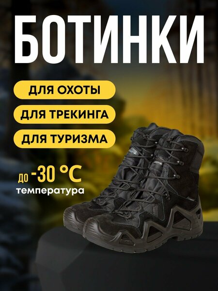 Модель охотничьих ботинок Taigan Camp - это незаменимая обувь при ходовой охоте. Высота ботинок обеспечивает надежную защиту лодыжек и голеней, а также позволяет без труда преодолевать любые препятствия, оставляя ваши ноги абсолютно сухими. Водостойкие и дышащие Taigan Camp black отлично подходят как для охоты, так и походов в любое время года. Верх модели выполнен из замши и прочного и износостойкого материала [Cordura]. Благодаря мембране [KingTex] с водонепроницаемостью 5000 мм вы не будете испытывать дискомфорта даже в самую дождливую погоду. Обувь имеет удобную подошву из прочного [PU, полиуретана], которая обеспечивает высокую гибкость, отличное сцепление на различных поверхностях и высокую амортизацию. Ботинки Taigan Camp оснащены синтетическим утеплителем [Thinsulation] 600G, который обеспечивает комфортное использование при температурах до -30°C. В них вы будете чувствовать себя уверенно и комфортно в любых условиях. Особенности обуви для охоты от Taigan включают удобную фиксацию стопы, подошву с противоскользящим покрытием для уверенности на любом грунте и инновационные технологии вентиляции для поддержания комфортной температуры ног в любых погодных условиях.