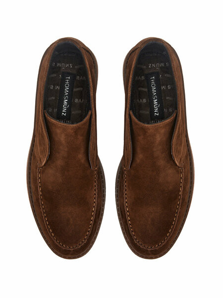Ботинки женские демисезонные замшевые из велюра КРС утепленные выполнены в стиле дерби без шнурков и застежки. Кожаные натуральные осенние и весенние полуботинки на толстой подошве 1,3 см и низком каблуке 2,3 см удобны для повседневной носки и прогулок. Коричневые ботинки на коричневой подошве дополнены качественной фурнитурой и деталями в стиле мокасины. Изготовлены теплые ботинки из натурального велюра КРС коричневого цвета, мягкого и дышащего, как замша. Подкладка и стелька из ворсина в тон, текстильного материала с натуральным и искусственным ворсом, нежного, как байка. Несъемная стелька с эффектом памяти Munz Memory препятствует усталости ног. Подошва с неглубоким протектором из ТЭП легкая и упругая, с отличными противоскользящими свойствами, подходит практически для всех поверхностей, автомобиля и чищенных от снега дорог, не имеет приспособления от гололеда и наледи. Каблук моноблок надежный, литой с подошвой. Женская обувь Томас Мюнц полноты 4 комфортна на узкую ногу и средней полноты. Задник внутри не утеплен. Высота голенища 8 см. Объем голенища 23 см. Температурный режим для комфорта ног не ниже минус 5. Вес пары около 600 гр. Красивые классические короткие ботинки на высокой подошве комфортны как основная и вторая обувь на межсезонье и теплую евро зиму. Удобные высокие ботинки на платформе небольшой высоты подходят для взрослых женщин, молодых девушек подростков, беременных. Легкие молодежные сапожки для подростка девочки обеспечивают комфорт. Подростковые ботинки классика выполнены с круглым носом. Стильные рабочие и школьные дерби демисезон на устойчивом каблуке легко сочетаются с одеждой разных стилей. Обувь подходит под платье, юбку, брюки. Модные короткие сапоги удобны для ходьбы и в машину. Повседневные полусапожки на широком каблуке пригодятся для работы, в школу, для дачи. Эта брендовая уличная обувь весна осень может заменить полусапоги для походов и туризма. Размерную сетку см. в фотографиях.