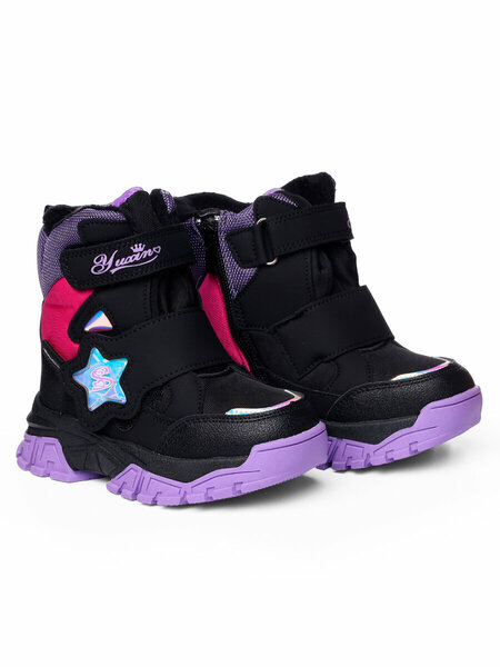 Длина стелек: р.23-14,5 см, р.24-15 см, р.25-15,5 см, р.26-16,5 см, р.27-17 см, р.28-17,5 см. Обеспечьте вашей маленькой принцессе тепло и комфорт с нашими зимними ботинками! Эти ботинки зимние для девочки воплощение стиля, уюта и надежной защиты от холода. Пусть ваша малышка наслаждается каждым морозным днем, полным радости и веселья. Искусственная кожа и теплый текстиль верха прекрасно сопротивляются непогоде. Даже в самые суровые условия снег и лужи не помешают активным играм вашего ребенка. Зимняя детская обувь оснащена усиленным мыском для продолжительного использования. Ваши малыши могут без забот путешествовать и играть на свежем воздухе, зная, что их обувь выдержит любые приключения. Нежный и теплый, как объятия, шерстяной мех в подкладке и стельке, в составе которого 75 % натуральной овечьей шерсти, создает уют и тепло. Ваш ребенок будет чувствовать себя комфортно даже в лютые морозы. Подошва из термопластичной резины обеспечивает превосходное отсутствие скольжения и амортизацию. Уникальной особенностью модели является система "антигололед" на подошве: при аккуратном откидывании "подковки" появляются антискользящие шипы, которые предотвращают падения на скользких поверхностях. Широкие липучки обеспечивают максимальную раскрываемость, надежную фиксацию и комфорт при носке. Оптимальный температурный режим - от -10°C до -25°C. Зимние ботинки для девочки сочетают в себе не только функциональность, но и стильный дизайн, позволяя вашей красотке выразить свою индивидуальность. Для очистки просто протрите поверхность влажной губкой или тряпкой. Позвольте обуви высохнуть естественным путем, избегая прямых солнечных лучей. Подарите своей малышке надежную защиту от холода с нашими зимними ботинками. Позвольте ей наслаждаться каждым шагом в прохладном волшебстве зимы. Закажите прямо сейчас и обеспечьте свою дочку стильной, удобной и теплой обувью!