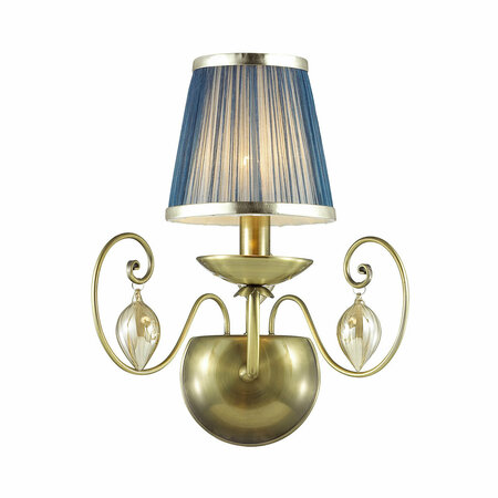 Великолепное бра 3921/1W серии Niagara выполнено в классическом стиле. Очень богатое и изящное основание светильника выполнено в благородном бронзовом цвете и дополнено идеально сочетающимися по тону небольшими стеклянными шарами и тонкими бусами, грациозно ниспадающими и переливающимися изысканным глянцем. Завершает этот великолепный дизайн восхитительный абажур из тонкой и полупрозрачной органзы невероятного темно-лазурного цвета, по краям деликатно украшенного тонкой тесьмой металлического оттенка. Этот элитный светильник станет достойным предметом интерьера. Цоколь Е14. Мощность 1*40W. Нет ламп в комплекте.
