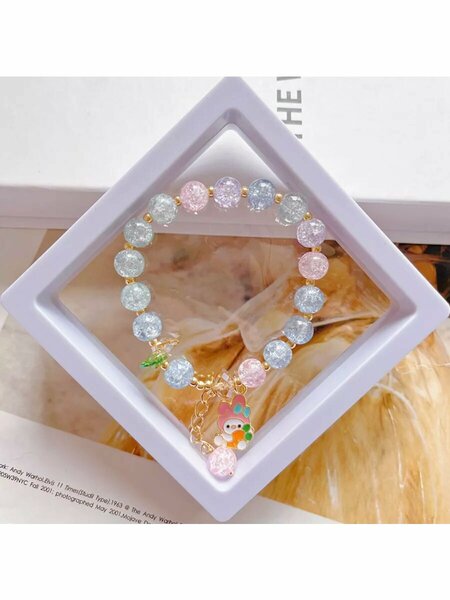 Красивый нежный безопасный стильный детский браслет для девочки из бусинок с фигурками. Детская бижутерия из бусинок это безопасный и милый подарок для девочки. К Браслеты с бусинами, под разноцветные камни - лучший сюрприз! Бижутерия с милыми фигурками животных и прикольными персонажами очень любят дети. Летние украшения для девочек, нежные цвета - сделают неповторимым любой образ. На каждом браслете имеется оригинальная мини фигурка - на данном Куроми! Данное украшени очень нежно смотрятся на детской ручке. Браслет состоит из бусин и ярких прозрачных камушек. Это прекрасная идея для подарка юной моднице. Браслет на резинке, что позволяет ребенку самостоятельно без чьей-либо помощи надевать и снимать украшение, его можно подарить вашей дочери, племяннице, сестре. Маленькие принцессы могут подарить эти браслеты с минифигурками своим подругам . Изготовлены из безопасных материалов высокого качества. Браслет тянется.