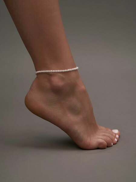 Изящный анклет ручной работы — это трендовое украшение, которое не только дополнит образы, но и позволит вам выразить свою индивидуальность! Изделие ручной работы выполнено из гидротермального циркона белого цвета. Круглые бусины красиво переливаются и очень нежно смотрятся на ножке. Ножной браслет имеет удобный и надежный замок — карабин. Длина изделия составляет 21 см. Для регулировки размера по объему щиколотки предусмотрена цепочка (5 см). Фурнитура у модели сделана из гипоаллергенного бижутерного сплава, который не тускнеет со временем. Она отличается высоким качеством и долговечностью. Дизайнерский браслетик из коллекции бренда «BLUE Jewelry» украсит ножку молодых девушек и взрослых женщин. Он отлично впишется в популярные молодежные стили и понравится девочкам — подросткам. Это изящное украшение, которое сделано мастерами в России. Оно универсально и подходит для повседневного ношения. Анклет станет частью базовых повседневных или романтичных женственных образов. Он добавит изюминку сдержанному офисному аутфиту. Такой аксессуар станет прекрасным выбором для создания модных летних и весенних луков в стиле бохо и минимализм. Изделие можно приобрести для себя или купить в качестве подарка для милых модниц. Такой презент позволит вам порадовать любимую дочку или сестру. Это замечательный сюрприз на день рождения подруги или хорошей знакомой. В коллекции «BLUE Jewelry» вы найдете большое количество разнообразных изделий с подвесками и без, выполненных из гематита, жемчужных бусин и других материалов. Вы можете выбрать стильные украшения с бусинами благородного серебристого, нежного перламутрового и других цветов. У нас есть акции и распродажи, вы можете купить наши товары в подарок со скидкой!