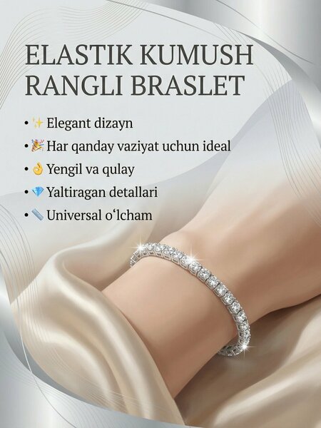 {"widgets":{"@card/UniversalPromoBadge":{"/content/page/fancyPage/defaultPage/universalPromoBadge":{"wrapperProps":{"margins":{"bottom":"3"}},"initialTime":1771634328518,"offerComposeId":"5777540428503956867"}}},"meta":{"/content/page/fancyPage/defaultPage/universalPromoBadge":{"name":"@card/UniversalPromoBadge"}},"collections":{"productServiceSnippets":{"5777540428503956867":{"productSnippet":{"snippetId":"document_id","type":"MODEL_CARD_LAYOUT","productPayload":{"snippetStyle":"NORMAL","title":{"value":"Эластичный браслет"},"badges":{},"price":{"actualPrice":{"amount":{"intPart":29000,"currency":"UZS"},"style":"RED","type":"OTHER_DISCOUNT"},"oldPrice":{"amount":{"intPart":41000,"currency":"UZS"},"style":"STRIKETHROWED"}},"gallery":{"mediaItems":[{"picture":{"baseUrl":"https://avatars.mds.yandex.net/get-mpic/17863628/2a0000019c70a2b56efea74e375638c69f97/","width":1080,"height":1440,"title":"Эластичный браслет, размер 18 см, размер one size, диаметр 18 см, серебряный/серый"},"type":"IMAGE"},{"picture":{"baseUrl":"https://avatars.mds.yandex.net/get-mpic/16889017/2a0000019813e6e5b77ccbc9db7359f54dc9/","width":1080,"height":1440,"title":"Эластичный браслет, размер 18 см, размер one size, диаметр 18 см, серебряный/серый"},"type":"IMAGE"},{"picture":{"baseUrl":"https://avatars.mds.yandex.net/get-mpic/5231768/2a00000197e593679fa60174a98477334707/","width":1080,"height":1440,"title":"Эластичный браслет, размер 18 см, размер one size, диаметр 18 см, серебряный/серый"},"type":"IMAGE"},{"picture":{"baseUrl":"https://avatars.mds.yandex.net/get-mpic/4033296/2a00000197e593679dba82091f37764d3e91/","width":1080,"height":1440,"title":"Эластичный браслет, размер 18 см, размер one size, диаметр 18 см, серебряный/серый"},"type":"IMAGE"},{"picture":{"baseUrl":"https://avatars.mds.yandex.net/get-mpic/1901647/2a00000197e593679ef81f2de4f6c7141eee/","width":1080,"height":1440,"title":"Эластичный браслет, размер 18 см, размер one size, диаметр 18 см, серебряный/серый"},"type":"IMAGE"},{"picture":{"baseUrl":"https://avatars.mds.yandex.net/get-mpic/12415859/2a00000197e593679ffd5a85b42543599620/","width":1080,"height":1440,"title":"Эластичный браслет, размер 18 см, размер one size, диаметр 18 см, серебряный/серый"},"type":"IMAGE"},{"picture":{"baseUrl":"https://avatars.mds.yandex.net/get-mpic/11393104/2a00000197e59ac3a3d7a13f0a54ed106279/","width":1024,"height":1024,"title":"Эластичный браслет, размер 18 см, размер one size, диаметр 18 см, серебряный/серый"},"type":"IMAGE"}],"isFashion":true},"rating":{"ratingValue":4.1,"ratingCount":7,"reviewsCount":1,"ratingCountStats":{"cnt1":1,"cnt2":0,"cnt3":1,"cnt4":0,"cnt5":5},"snippet":{"rating":"4.1","type":"product","description":"(7) · 31 купили","descriptionList":["(7)","31 купили"],"ratingStar":"4"}},"wishlistButton":{"businessId":198324041,"mskuId":4526932073,"modelId":1268755361,"oskuId":4526932073,"offerId":"UTeKWCMqvCPrDvLOnQ31vw"},"productRating":{"rating":"4.1","type":"product","description":"(7) · 31 купили","descriptionList":["(7)","31 купили"],"ratingStar":"4"}},"baobabPayload":{"type":"offer","wareId":"UTeKWCMqvCPrDvLOnQ31vw","modelId":1268755361,"marketSku":"4526932073","snippet_type":"product","isExpress":false,"price":41000,"additionalPrices":[{"priceType":"withDiscount","priceValue":29000},{"priceType":"unknown","priceValue":41000}],"hid":67678046,"shopId":431782,"shopSku":"12232123","supplierId":198324039,"supplierType":3,"isUltima":false,"oskuId":4526932073,"snippetTheme":"GRID_FULL","stockCount":14,"rating":{"rating":"4.1","purchaseCount":"31","gradesCount":"7","ratingType":"product"},"promoLogJoinId":"277a0a30fba8a166ffb539ba26f16b8a/ced608a80295f210"},"themeType":"GRID_FULL"}}}}}