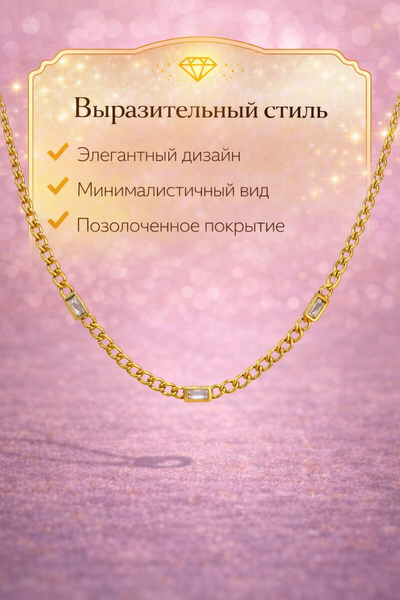 Эта цепочка — утончённый акцент, который подчёркивает стиль и индивидуальность. Изящное плетение создаёт аккуратный, выразительный рисунок, красиво переливающийся при движении. Благородный золотистый оттенок придаёт украшению мягкое сияние и делает его универсальным для любого случая — от повседневных образов до вечерних выходов. Цепочка гармонично смотрится как самостоятельный аксессуар и легко сочетается с кулонами или другими украшениями. Лёгкая и комфортная в носке, она станет любимой деталью в вашей коллекции и добавит образу завершённости. Иногда достаточно одного украшения, чтобы выглядеть безупречно