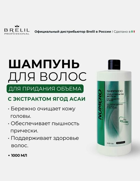 Brelil Numero Шампунь для придания объема с экстрактом ягод асаи Volume 1000 мл