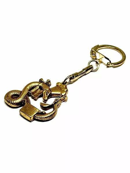 Вербица. Брелок для ключей на сумку и рюкзак "Змея повар". Подвеска на брелке - Ручная работа. Размеры подвески: 30Х35 мм. Бронза. Сделано в России. Карабин (Змейка). Кольцо 1,5 см. Длина изделия 8 см. Вес: 15 гр. Брелок из бронзы универсальный. Независимо мужской или женский - подходит для всех возрастов и полов. Если вы ищете сувенир в подарок для особого случая: на день рождения, Новый год, годовщину памятного события, или другой праздник человеку, интересующемуся культурой, искусством или просто ценящего в жизни оригинальность и красоту - закажите наш брелок из бронзы, и он будет олицетворять вашу признательность и заботу. Такой интересный эксклюзивный сувенир станет приятным сюрпризом для сестры, брата, дочки, сына, жены, мужа, подруги, друга, для мальчиков и девочек, школьников, молодой мамы или любимого молодого человека. Подходит как для взрослых, так и для детей, семейного подарка. Можно прикрепить на сумку, портфель или в машину. Брелок для ключей – практичный и оригинальный подарок! Это небольшой, но очень практичный предмет, который позволяет не потерять важные вещи, например ключи от квартиры или машины и иные важные предметы нашего быта. Ключи в связке с брелком очень приятно ощущать в кармане или руке и легко найти в сумке. Имея брелок на связке, Ваш ребенок всегда будет знать, где его ключи, это способствует уменьшению вероятности потери ключей. Брелки на сумках и рюкзаках или зацепленный за шлёвку джинсов, служит средством индивидуализации, отражающим вкусы и интересы своего владельца может стать стильным аксессуаром, придающим образу изюминку. Выбирайте тот брелок, который лучше всего соответствует вашему стилю и интересам и носите его куда угодно!
