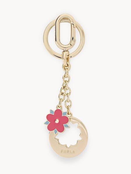 Брелок Furla Crystal, дополненный эмалированной подвеской в виде цветка на перфорированном металлическом диске, позволяет организованно хранить ключи или придать яркий акцент сумке и аксессуарам. - Карабин и разъемное кольцо с выгравированным логотипом Furla - Выгравированный логотип Furla сзади