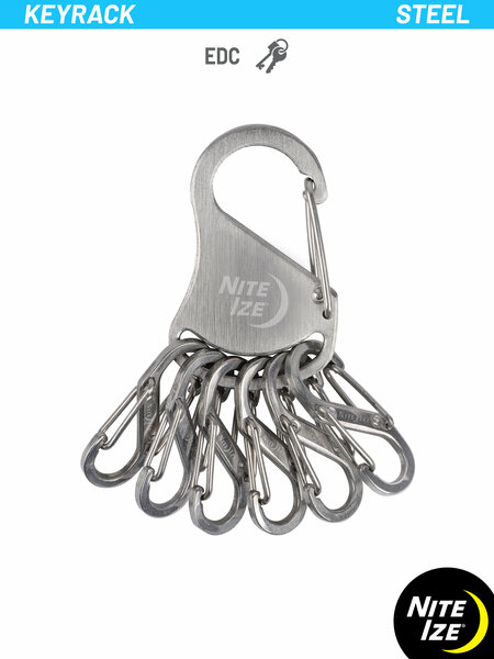 Брелок KeyRack Steel представляет собой большой карабин, внутри специального отсека которого размещены шесть маленьких S-образных карабинов для крепления ключей или вещей. Все детали изготовлены из высококачественной нержавеющей стали, обеспечивающей прочность и долговечность. Модель доступна в двух цветах. Крепкая конструкция, надежное крепление, стильный дизайн, удобство и исключительная практичность - все это Nite Ize KeyRack Steel! ---
