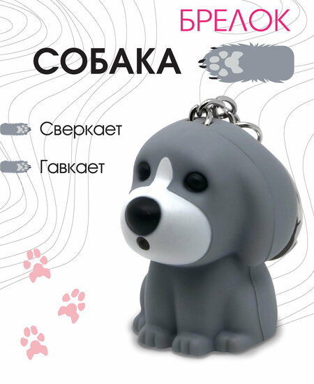 Брелок для ключей Собака - это милый и полезный аксессуар как для взрослого, так и для ребенка. Брелок на сумку или брелок на рюкзак Щенок включает подсветку и лает при нажатии кнопки на задней части игрушки. Красивый детский брелок серый пес станет прекрасным забавным подарком для сына или дочки, внука или внучки - одним словом, каждый ребенок оценит его забавный внешний вид и не захочет с ним расставаться. Брелок-игрушка для ключей от дома выполнен из практичного ABS-пластика, а кольцо брелока - из прочного нержавеющего сплава. Брелок очень удобен и как фонарик, его подсветки вполне хватает, чтобы подсветить замочную скважину, лестницу или дверь автомобиля в темное время суток. В брелке заранее установлены 3 батарейки AG10. При необходимости элементы питания можно легко заменить. Если Вы в поиске недорого, красивого и практичного брелока для ключей, наш магазин рад предложить Вам широкий ассортимент стильных и необычных аксессуаров в подарочной упаковке на все случаи жизни.