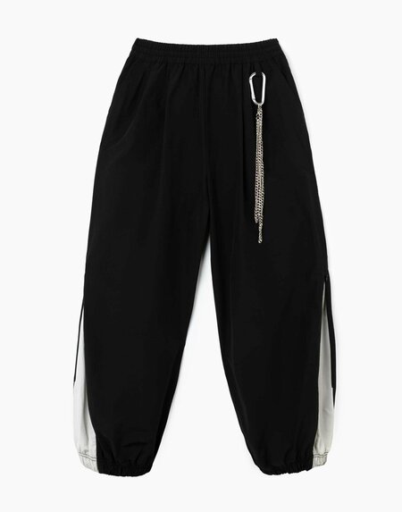 Эти джоггеры пропитаны эстетикой бунтарских 90-х! Транслируй тренды из прошлого в новом прочтении. В этой стильной модели ты сможешь свернуть горы! Она расширяет простор для действий и заряжает драйвом. Трендовая цепь добавит гранжа, а разрезы на молнии привнесут ещё больше свободы и мятежного духа. Высокотехнологичный материал позаботится о твоём настроении. В этих брюках ты почувствуешь себя панк-звездой. Комбинируй джоггеры с рваным лонгсливом и оверсайз-бомбером. Футуристичные кроссовки и бейсболка с потёртостями повысят модный градус твоего образа. Детали: крой Jogger, эластичный пояс со шнурком, цепь на карабине, резинка и молния снизу, карман сзади. Гарантийный срок товара 30 дней.