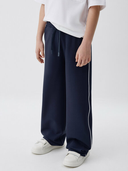 Широкие брюки с лампасами для мальчика из школьной коллекции бренда SELA – идеальный выбор для школы и не только. Они сшиты из плотного трикотажа на основе вискозы, который отлично держит форму, не мнется и позволяет коже дышать. Расслабленный крой и комфортная средняя посадка делают эти брюки универсальными: они подходят как для уроков, так и для активных игр после школы. Эластичный пояс с кулиской обеспечивает идеальную посадку по фигуре, а брючины полной длины завершают стильный образ. Эта модель входит в школьную коллекцию, поэтому отлично сочетается с рубашками, пиджаками и жилетами. Трикотажные брюки для школы – это не просто элемент школьной формы, а стильный акцент в гардеробе мальчика. Они подчеркивают активность и динамичность, позволяя свободно двигаться на переменах и после занятий. Выбирая одежду для школы, родители хотят, чтобы она была практичной, износостойкой и легкой в уходе. Школьные темно-синие штаны с лампасами отвечают всем этим критериям: они не вытягиваются, сохраняют цвет после множества стирок и не требуют глажки. А современный дизайн делает их актуальными не только для учебных будней, но и для повседневной носки. Дополните образ стильными аксессуарами – и ваш ребенок будет выглядеть безупречно в любой ситуации. В новой коллекции SELA вы найдете все необходимое для школьного гардероба мальчика: от классических брюк и рубашек до удобных свитшотов и кардиганов. Школьная форма от SELA воплощает гармонию элегантного стиля, комфорта и функциональности. Бренд предлагает широкий ассортимент моделей для девочек и мальчиков, отвечающих всем требованиям современных школ. На ребенке представлен размер 140.
