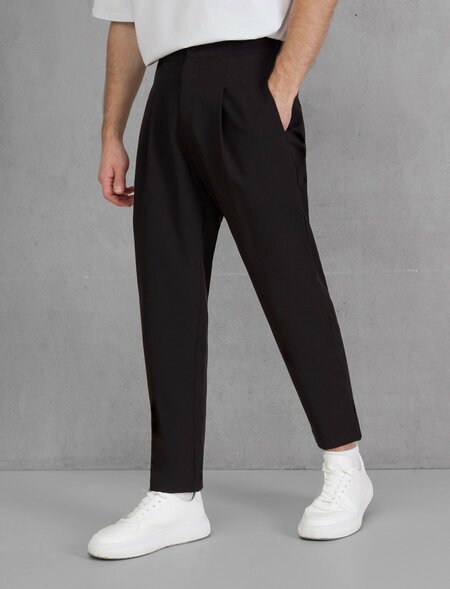 Представляем вам стильные мужские брюки бананы со стрелками бренда Lipkinof Man - классические черные штаны, которые идеально подходят для летнего и зимнего времени. Эти брюки хорошо тянутся, как оверсайз, обладают удобным кроем, что придает им стильную и модную внешность. Качественные материалы и отличный пошив гарантируют долгий срок службы и комфорт при ношении. Так же, сзади представлена резинка, которая корректируется под любую фигуру. Мужские брюки бананы представлены в классическом стиле, что делает их подходящими для различных случаев - от повседневной носки до офисной обстановки. Дизайн брюк вдохновлен карго и бананами, что придает им особый шарм и уникальность. Это идеальный выбор для стильных и модных мужчин, которые хотят быть в тренде в 2023 году. Они сочетают в себе легкость летних штанов и тепло зимних, делая их универсальными.