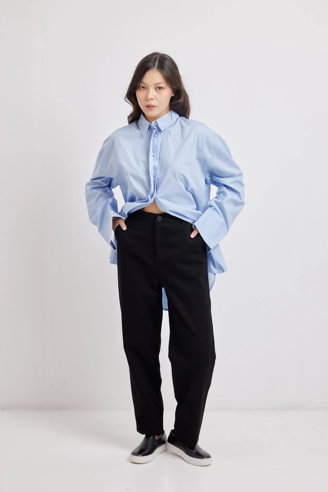 Базовые брюки прямого кроя на средней посадке. Имеют шлевки под ремень и застежку на молнию с пуговицей. Модель, что легко впишется практически в любой образ и гардероб.