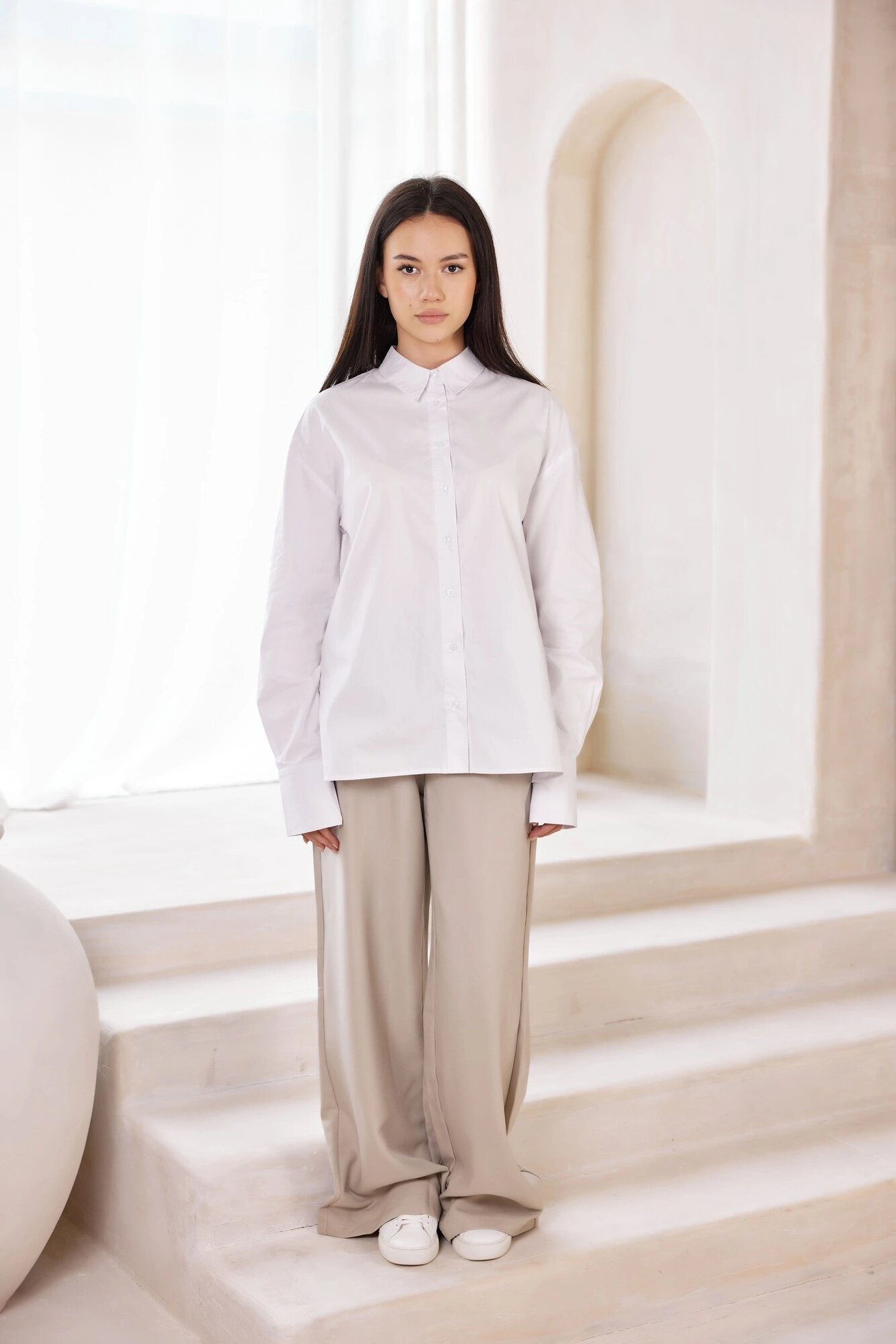 Комфортные брюки прямого свободного кроя с эластичным поясом и веревочными утяжками. Стильная и удобная модель, не приносящая дискомфорта и не сковывающая движения. Станет отличным вариантом на каждый день.