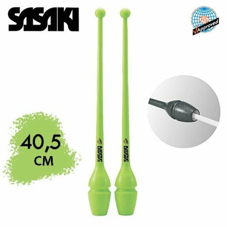 Булавы SASAKI 40,5см. Двойная система фиксации: легкая фиксация - для быстрого движения, сильная фиксация - для динамического движения. Предметы Sasaki признаны лучшими в мире, с ними легко учиться новичкам и работать профессиональным гимнасткам - проверено годами! Резиновые булавы SASAKI состоят из стекловолоконной основы, которая придает им прочности и уританового покрытия сверху, которое, как и литая форма, сокращает возможность появления трещин и расколов и содействует динамичным броскам во время выступления. Булава, если вытянуть её вдоль руки, держа в кисти за маленькую головку, должна доходить до середины плеча так, чтобы было удобно её держать и выполнять различные вращения булавой. Булава не должна касаться носа или подбородка. Хранить булавы необходимо в специальном чехле. Чехол для булав поможет сохранить булавы в чистоте и защитить от возможных царапин в сумке. Булавы можно украсить при помощи разноцветных Обмоток. Существует большой выбор клейких обмоток самых разных цветов и оттенков, из которых вырезаются узоры и наклеиваются на булавы. Материал: Каучук(резина) Сертифицированы Международной федерацией гимнастики.(FIG)