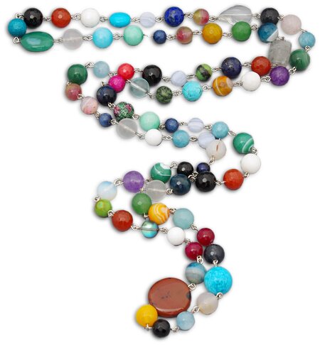 Бусы из самоцветов (агат, сердолик, кварц), на цепочке, без замка, диаметр бусин 6-15 мм, длина 140 см. В комплекте подарочная коробка (цвет произвольный). Изделие ручной работы. Обращаем Ваше внимание, что возможны незначительные расхождения с фотографией на сайте по форме, размеру и цвету в изделии (из-за настроек цветового профиля, разрешения монитора или экрана смартфона).