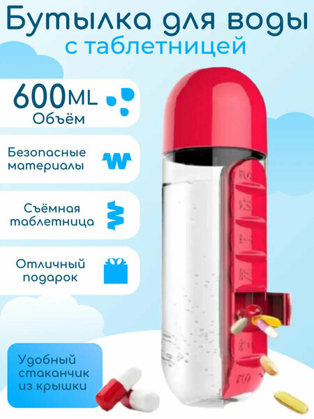 Бутылка для воды " Органайзер для таблеток ", пластик, 600мл