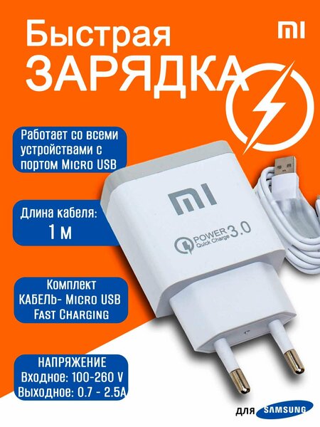Быстрое зарядное устройство Mi для Samsung с кабелем Micro USB Fast Charging