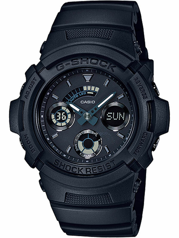 Противоударные кварцевые мужские наручные часы Casio AW-590-1A коллекции G-Shock с двойной индикацией времени. Калибр механизма — 4778. Функциональность данной модели: формат времени 12/24, мировое время 29 городов (27 часовых поясов), автоматический календарь до 2039 года, функция летнего времени (DST), 5 независимых будильников, сигнал начала часа, секундомер с точностью 1/100 секунды и измерением до 59 минут 59,99 cек, таймер обратного отсчета (диапазон времени 60 минут), диодная подсветка циферблата с функцией авто (включается при наклоне часов на 40°) и люминесцентное напыление на стрелках и метках. Водонепроницаемость WR200 (20 атм). Размеры корпуса: Диаметр 41 мм; толщина 15.4 мм Гарантийный срок — 3 года (1 год от производителя + 2 года от магазина).