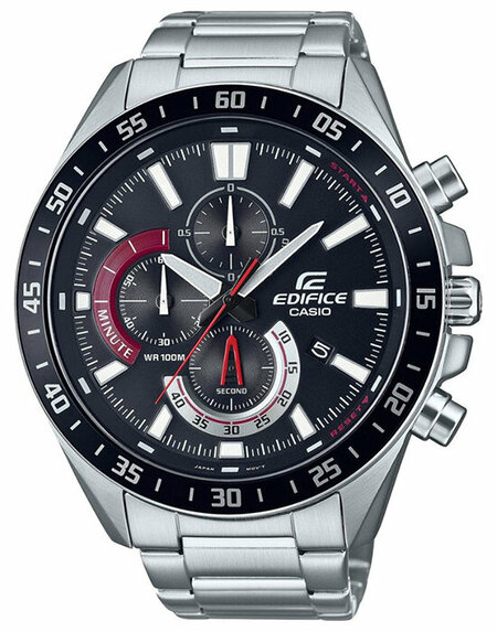 Японские мужские часы с хронографом Casio Edifice EFV-620D-1A4VUDF (EFV-620D-1A4), кварцевый механизм с высокой точностью. Класс водозащиты: 100 метров, позволит плавать, нырять и заниматься другими водными видами спорта. Корпус часов изготовлен из стали, цвета.