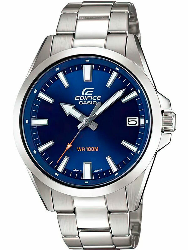 Мужские кварцевые наручные часы Casio EFV-100D-7A. Коллекция Edifice. Калибр механизма — 5507. На данной модели отображается дата. Стрелки и метки покрыты люминесцентным напылением (светятся в темноте). Водонепроницаемость WR100 (10 атм). Завинчивающаяся задняя крышка. Размеры корпуса: (ШхВхТ) 42x48x10.9 мм Гарантийный срок — 3 года (1 год от производителя + 2 года от магазина).