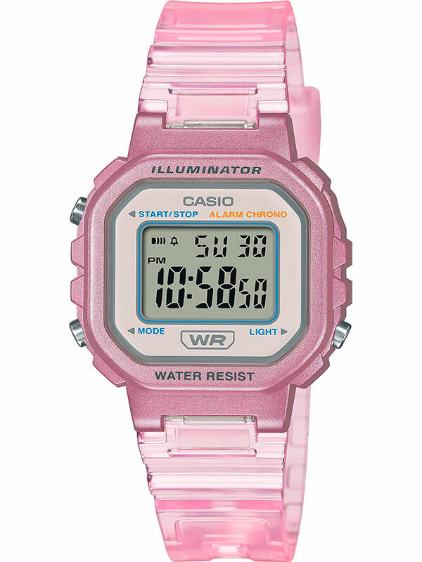 Электронные кварцевые женские наручные часы LA-20WH-4A с цифровой индикацией времени. Калибр механизма — 3284. Функциональность данной модели: формат времени 12/24, автоматический календарь, будильник, сигнал начала часа, секундомер с точностью 1/100 секунды и измерением до 59 минут 59,99 cек. Диодная подсветка циферблата. Водонепроницаемость WR (3 атм). Размеры корпуса: (ШxВxТ) 30.4x34.5x8.6 мм. Гарантийный срок — 3 года (1 год от производителя + 2 года от магазина).