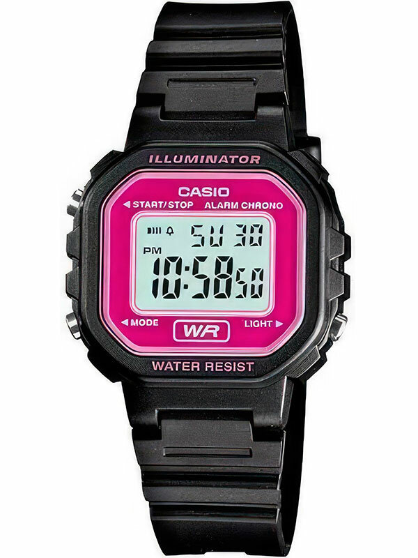 Электронные кварцевые женские наручные часы Casio LA-20WH-8A с цифровой индикацией времени. Калибр механизма — 3284. Функциональность данной модели: формат времени 12/24, автоматический календарь до 2099 года, будильник, сигнал начала часа, секундомер с точностью 1/100 секунды и измерением до 59 минут 59,99 cек, диодная подсветка циферблата. Размеры корпуса: (ШxВxТ) 30.2x34x8.8 мм. Гарантийный срок — 3 года (1 год от производителя + 2 года от магазина).