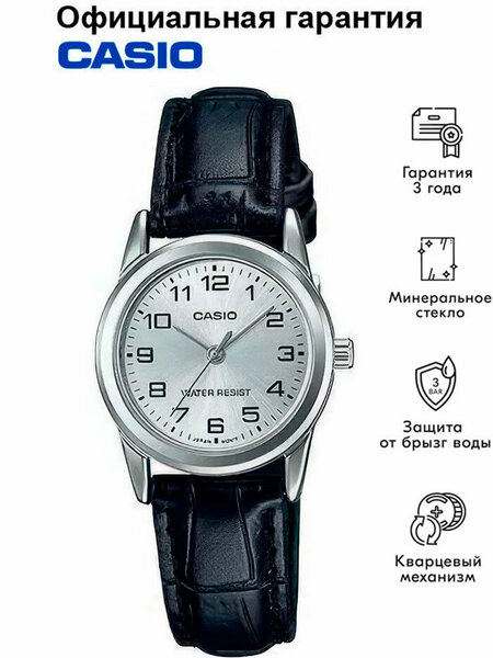 Женские кварцевые наручные часы Casio LTP-V001L-7B. Калибр механизма — 5361. Ремешок из искусственной кожи. Водонепроницаемость WR (3 атм). Размеры корпуса: (ШxВxТ) 25x31x7.6 мм Гарантийный срок — 3 года (1 год от производителя + 2 года от магазина).