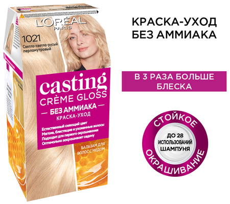 {"widgets":{"@card/VerifiedBadge":{"/content/page/fancyPage/defaultPage/verifiedBadge":{"wrapperProps":{"margins":{"bottom":"3"}},"badges":[{"style":"BG_INVERT_PRIMARY","text":"Оригинал","showChevron":false,"popupInfo":{"title":"Оригинал","items":[{"text":"Так отмечаются товары, по которым продавцы предоставили документы об оригинальности"}]},"zoneData":{"text":"Оригинал","type":"text"}}],"isUltimaKM":false,"footerButtonText":"Понятно"}}},"meta":{"/content/page/fancyPage/defaultPage/verifiedBadge":{"name":"@card/VerifiedBadge"}},"collections":{"offerAnalytics":{"1511202323389362322":{"showUid":"17713259117203000465106001","promoAttributes":[{"shopPromoId":"wxNSetw0efyz2GI-vdthnA","promoType":"percent-discount","promoKey":"wxNSetw0efyz2GI-vdthnA"},{"shopPromoId":"cf_135726","promoType":"empty-promo","promoKey":"xD1-78LDt8ve5lk-5jj0FQ"}],"wareId":"IYOUTxMG4SgeunsjNukSpA","modelId":"198174112","marketSku":"100464601413","paymentMethodTypes":["deliverycard","deliverycash","prepaymentcard"],"isCrossBorder":true,"isOnDemand":true,"isSponsored":false,"skuId":"100464601413","oskuId":"103581540608","marketSkuCreator":"market","price":153473,"oldPrice":201625,"merchPrice":201625,"vendorId":8527937,"hid":64248927,"nid":64249656,"isDigital":false,"deliveryPartnerTypes":["YANDEX_MARKET"],"offerColor":"blue","productId":198174112,"feedId":58281002,"availableCount":9,"shopId":431782,"supplierId":216417845,"shopSku":"000189.A5776974","isExpress":false,"warehouseId":305,"isBnpl":true,"isInstallments":false,"businessId":"924574","paymentTypes":["POSTPAYMENT","PREPAYMENT"],"benefit":{"type":"waremd5","isPrimary":true,"description":"Хорошая цена от надёжного магазина"},"yandexBnplInfo":{"enabled":true},"isBondAvailable":false,"isDSBS":false,"promos":[{"key":"wxNSetw0efyz2GI-vdthnA","type":"percent-discount","shopPromoId":"wxNSetw0efyz2GI-vdthnA","landingUrl":"https://market.yandex.ru/special/percent-discount-landing?shopPromoId=wxNSetw0efyz2GI-vdthnA","isPersonal":false,"description":"PROMOAPPROVAL-43597: для Фарида до 160 к"},{"key":"xD1-78LDt8ve5lk-5jj0FQ","type":"empty-promo","shopPromoId":"cf_135726","landingUrl":"https://market.yandex.ru/special/empty-promo-landing?shopPromoId=cf_135726","isPersonal":false,"description":"Новые_акции_для_лендингов_полок_УЗБ_Beauty_1201"}],"prices":{"price":{"value":153473,"currency":"UZS"},"priceWithoutVat":{"value":153473,"currency":"UZS"},"discountedPrice":{"price":{"value":153473,"currency":"UZS"},"discount":{"value":48152,"currency":"UZS"},"percent":24}},"supplierType":"1","pp":200,"gci":"103581540608","title":"L'Oreal Casting Creme Gloss Стойкая краска-уход для волос без аммиака, оттенок 1021, Светло-светло-русый перламутровый 180мл"}},"vendorDoc":{"1511202323389362322":{"verified":true}},"badges":{"1511202323389362322":{"gallery":["bi_8266655855392218655"],"train":[]}},"badgeItem":{"bi_8266655855392218655":{"style":"BADGE_PROPERTY_PRIMARY","type":"text","text":"ОРИГИНАЛ","popupInfoId":"pp_3667891250342019889","showChevron":true,"analytics":{"type":"originalBadge","text":"ОРИГИНАЛ","position":0}}},"popupInfo":{"pp_6993192843758516824":{"type":"onClickSignal","params":{"title":"Когда заказ приедет из-за рубежа, курьер привезёт его по клику","items":[{"label":"Назначим точную дату доставки","text":"Когда заказ пройдет таможню","icon":"calendar"},{"label":"В день доставки напишем, что можно вызвать курьера","text":"На это будет 3 дня","icon":"bell"},{"label":"Нажмите кнопку, и курьер приедет","text":"В течение 15–30 минут","icon":"click"}],"actions":[{"text":"Понятно","type":"close","theme":"normal"}]}},"pp_1120597706417580457":{"type":"crossborderSignal","params":{"title":"Доставка из-за рубежа","text":"Для таможни понадобятся паспортные данные и ПИНФЛ получателя. Их запросит Market или продавец.\n\nЗарубежные заказы общей стоимостью до $200 за календарный месяц пошлиной не облагаются.\n\nПри исчерпании лимита пошлина составит 30% от суммы превышения. Смс для оплаты придёт в день прибытия товаров на таможню.\n\nВ течение полугода рекомендуем покупать не больше 2 одинаковых товаров. Это связано с таможенными ограничениями для физических лиц.","actions":[{"text":"Узнать больше","type":"link","link":"https://yandex.uz/support/market-yandex-go/customer/ru/cross-border","theme":"normal"},{"text":"Понятно","type":"close","theme":"action"}]}},"pp_3667891250342019889":{"params":{"title":"Оригинал","items":[{"text":"Так мы отмечаем товары популярных брендов, если продавец предоставил документы об оригинальности"}]}},"pp_15773598120700656811":{"type":"priceDetails","params":{"priceDetails":{"title":"L'Oreal Casting Creme Gloss Стойкая краска-уход для волос без аммиака, оттенок 1021, Светло-светло-русый перламутровый 180мл","prices":[{"value":{"content":[{"type":"price","value":"153473.000000","unit":"сум/уп"}],"feature":"RED_PRICE"},"subtitle":{"content":[{"type":"literal","value":"цена на товар"}],"feature":"SECONDARY_RED"}}],"discountDetails":[{"label