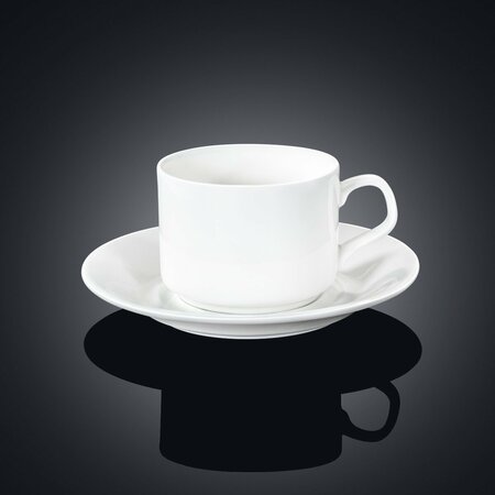 ### Чашка чайная и блюдце 215 мл WL‑993112/AB от Wilmax England Погрузитесь в мир утончённого вкуса и стиля с чайной чашкой и блюдцем WL‑993112/AB от бренда Wilmax England. Эта элегантная пара, выполненная из высококачественного белого фарфора, станет изысканным дополнением к вашей коллекции посуды. Объем в 215 мл идеально подходит для наслаждения любимым чаем, создавая атмосферу уюта и комфорта в каждом глотке. Чашка имеет округлую форму, что придаёт ей не только эстетическую привлекательность, но и удобство в использовании. Белоснежный цвет фарфора легко вписывается в любой интерьер, подчеркивая вашу индивидуальность и внимание к деталям. Благодаря своей универсальности, данная чайная пара гармонично дополнит как повседневный, так и праздничный стол, придавая ему нотки элегантности. Каждое изделие Wilmax England отвечает самым высоким стандартам качества. Фарфор, из которого изготовлена чашка и блюдце, подходит для использования в микроволновой печи и посудомоечной машине, что делает его не только красивым, но и практичным выбором для современного дома. Премиальная подарочная упаковка станет идеальным решением для подарка близким и друзьям, ведь такая посуда всегда актуальна и востребована. Выбирая чайную чашку и блюдце WL‑993112/AB от Wilmax England, вы выбираете не просто посуду, а истинное произведение искусства, которое будет радовать вас и ваших близких долгие годы. Позвольте себе наслаждаться каждым моментом с этой изысканной парой!