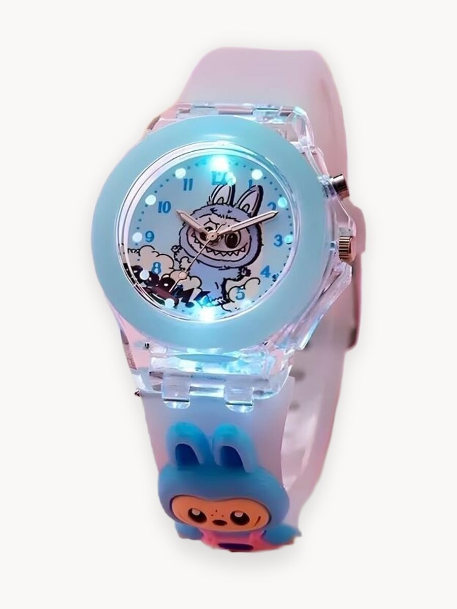 Особенности детских часов для девочек и мальчиков : 1. Ремешок часов изготовлен из экологически чистого силикона и дополнен светящимся порошком, обладающим светящимся эффектом. Вы можете увидеть заметный световой эффект ночью или в темных местах. 2. Часы оснащены встроенным световым механизмом. Нажатие кнопки в направлении «2 часа» начнет мигать движение светящегося света, а красочный свет будет мигать в течение примерно 10 секунд, прежде чем автоматически выключится. Без нажатия кнопки он не будет мигать и излучать свет. 3. На поверхности часов изображен Labubu в виде элементов, с различными яркими и милыми узорами, которые очень любят дети. Батарея: в часах используются батарейки, которые нельзя заряжать. Часы имеют два встроенных кнопочных элемента. Светоизлучающий механизм лампы оснащен батареями CR2025, а время перемещения часов оснащено батареями SR626SW. Две батарейки не влияют друг на друга. Срок службы батареи может составлять более одного года в зависимости от времени. Не беспокойтесь о долговечности аккумулятора. Светоизлучающая батарея движения лампы представляет собой большой кнопочный элемент, имеющий достаточную мощность. Применимая аудитория: мальчики и девочки в возрасте от 4 до 14 лет, дети начальной школы, учащиеся средней школы, старшие братья, старшие сестры.