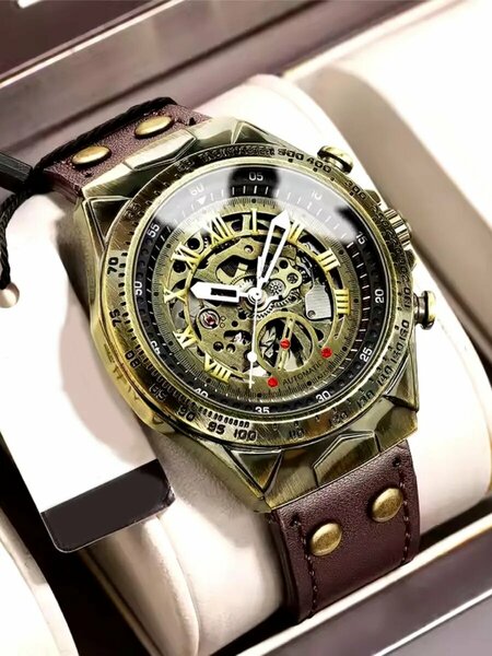 Часы наручные механические с автоподзаводом от бренда ШопоГолик представляют собой идеальный аксессуар для мужчин, которые ценят стиль, функциональность и качество. Эти часы выполнены в классическом и спортивном стиле, что делает их универсальным выбором для повседневного ношения, а также для активных занятий, таких как футбол, фитнес и бег. Особое внимание уделено материалам и конструкции часов. Циферблат изготовлен из нержавеющей стали и украшен минеральным стеклом, которое не только устойчиво к царапинам, но и добавляет изделию элегантности. Декоративные элементы в виде скелетона делают часы еще более привлекательными, подчеркивая их уникальность. Браслет из экокожи обеспечивает комфортное ношение на любом типе кожи. Механизм часов сочетает в себе механические и кварцевые технологии, что обеспечивает точность времени и удобство автоподзавода, что особенно важно для активного образа жизни. Стиль часов классический и спортивный, что позволяет их носить как в офисе, так и в спортивных целях. Тип индикации стрелочный с индексами на циферблате серебристого цвета добавляет изделию изысканности и легкость чтения времени. Инструкция к применению: Потяните за заводную головку по направлению 3 часа. Установите текущее время, нажмите на заводную головку. Если часы используются непродолжительное время, функция автоподзавода не обеспечит полной зарядки механизма, часы остановятся. Для полного завода механизма необходимо ежедневно производить 20-25 оборотов (желательно в одно и то же время) заводной головкой, чтобы часы работали.