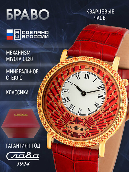 {"widgets":{"@light/ProductM2bEdoOnlyBadge":{"/content/page/fancyPage/defaultPage/m2bEdoOnlyBadge":{"wrapperProps":{"margins":{"top":"2"}},"isM2bEdoOnlyEnable":false}}},"meta":{"/content/page/fancyPage/defaultPage/m2bEdoOnlyBadge":{"name":"@light/ProductM2bEdoOnlyBadge"}},"collections":{"views":{"defaultOffer":"vi_12446673741384095370_bi_7199284098922963829"},"viewItem":{"vi_12446673741384095370_bi_7199284098922963829":{"id":"vi_12446673741384095370_bi_7199284098922963829","composeId":"12446673741384095370","buyOptionId":"bi_7199284098922963829"}},"buyOption":{"bi_7199284098922963829":{"id":"bi_7199284098922963829","title":"Наручные часы Слава Браво, красный/золотой","offerId":"9CS86Ci8cguTFsBjdmnL2g","slug":"chasy-naruchnyye-slava-kvartsevyye-1343472gl20","trackingLinks":{"cpa":"/pRHFPUBdl1LQjmblkVTkAKiK8Tw2","promotionUrl":"/S9MP4yqHGlTIjlwSP91kXC6ETD6W"},"skuId":"13439244","productId":"1779659144","categoryId":"91259","navnodeId":"51960073","departmentId":"54432","showUid":"17716820700664174981006001","counterStep":1,"minimum":1,"maximum":2,"price":{"value":1846987,"currency":"UZS"},"vendorId":"4723927","feeShow":"OTNDnItfwRMlLJby2gHopZ87U2vGJXKhZ4fK2dQa_mzgwNo2jyd1MPT_3aB4Wc0ehPkFxk1Z-vgYWQBqPCKhAV4O8XIklTGbT3UpPdOJPP-MuYj3-iNyO_B9Ca-NWzSCFCm4qXzV1uVwvwMXl5fRqmBZj4EpaJ5Cly088Y0laaSlNi4UFbP4y2Labux-Nl8gGgTgdjOxtGCbjxOtlCs2iOKQD6nS0d1B1Tg3wp9TNjlkBgOn9VD5cpF16Z4F4T4HA7WH3sjgQphC9wHJwpAou81WeNrmvpXBtE8TQWlab24,","feedId":"25679837","feedOfferId":"25679837.1563","shopId":"431782","supplierId":"77857167","businessId":"864339","supplierName":"ЧК Слава - Русские часы","businessName":"ЧК Слава - Русские часы","hasAnySize":false,"hasAnyDelivery":true,"benefitTypeCode":"waremd5","basePrice":{"value":2052209,"currency":"UZS"},"promos":[{"key":"qnMAt4qIJfIsmldjHOyQWg","type":"unknown","shopPromoId":"cf_bp_1000325","anaplanId":"cf_bp_1000325","landingUrl":"https://market.yandex.ru/special/blocking-promo-landing?shopPromoId=cf_bp_1000325"},{"key":"NWC52PFoxEAKDGJ_kcvEkg","type":"unknown","shopPromoId":"price_increase_promo_77857167","anaplanId":"price_increase_promo_77857167","landingUrl":"https://market.yandex.ru/special/price-increase-promo-landing?shopPromoId=price_increase_promo_77857167"}],"flags":["isVisual","isFby","isOnDemand","isCrossborder","isFashion"],"analytics":{"warehouseId":"172","paymentType":"ANY","paymentMethodTypes":["BY_CARD_ONLINE","BY_CARD_TO_COURIER","IN_CASH"],"deliveryOptions":[{"deliveryType":"pickup","fromDate":1772459670,"toDate":1772632470,"priceInfo":{"value":0,"currency":"UZS"}},{"deliveryType":"pickup","fromDate":1772459670,"toDate":1772632470,"priceInfo":{"value":0,"currency":"UZS"}},{"deliveryType":"delivery","fromDate":1772459670,"toDate":1772632470,"priceInfo":{"value":0,"currency":"UZS"}}],"shopSku":"1563","placementType":"3P","ownMarketPlace":true,"shopSlug":"yandex-market","yandexBnplInfo":{"enabled":true},"promos":[{"key":"qnMAt4qIJfIsmldjHOyQWg","type":"unknown","shopPromoId":"cf_bp_1000325","landingUrl":"https://market.yandex.ru/special/blocking-promo-landing?shopPromoId=cf_bp_1000325","isPersonal":false,"description":"Отключение магазинов по ID промо от ДЦО. Узбекистан"},{"key":"NWC52PFoxEAKDGJ_kcvEkg","type":"unknown","shopPromoId":"price_increase_promo_77857167","landingUrl":"https://market.yandex.ru/special/price-increase-promo-landing?shopPromoId=price_increase_promo_77857167","isPersonal":false}],"hypeBadge":{"hasBadgeRare":false}},"deliveryType":"PICKUP","imageMeta":{"namespace":"mpic","groupId":4937117,"key":"2a0000019b20a577644a68f0da59d374668b"}}},"market2Business":{"current":{"id":"current","isM2b":false}}}}