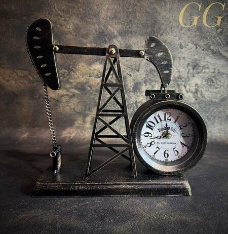 Кому подарить? Работнику нефтяной промышленности Подарок руководителю Партнерам Ко дню нефтяника О товаре: Сувенир «Добыча нефти» — представляет собой стилизованную технологическую композицию нефтедобывающего комплекса: нефтяной качалки. Этот имиджевый подарок для нефтяника создан в виде часов Характеристика: Материал: Металл/МДФ Производитель/Бренд: Россия Размеры: 28*9*26 см Об упаковке: картонная коробка