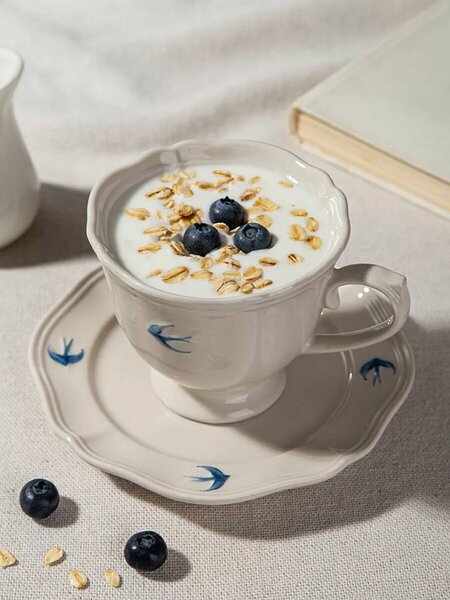 Чайная пара от бренда "Тепло в руках" -"Британские чайки" керамическая 220 мл, набор чашка и блюдце
